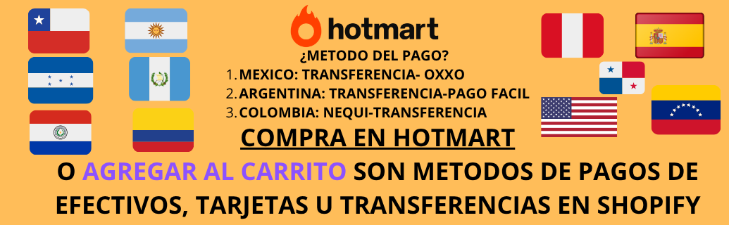 “Compra en Hotmart” para pagar con tu cuenta. Incluye métodos de pago como OXXO, PagoFácil, Nequi, PayPal y más, disponibles en países de Latinoamérica como México, Colombia, Guatemala, República Dominicana, entre otros.